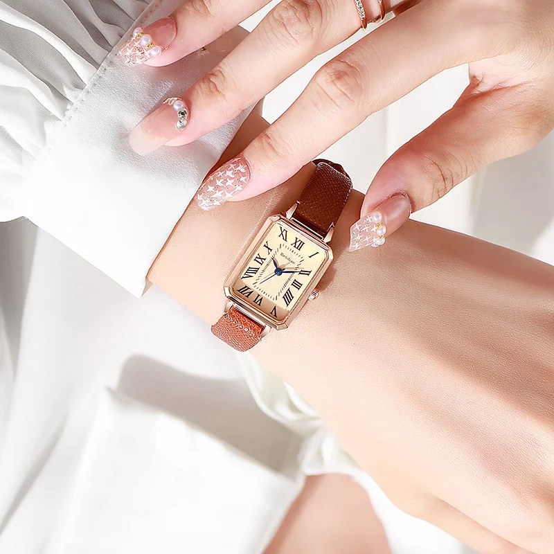 Fashion Retro Digital Dial Casual Watches Square Leather Strap Fashionable Clock Quartz Wristwatch for Women Gift